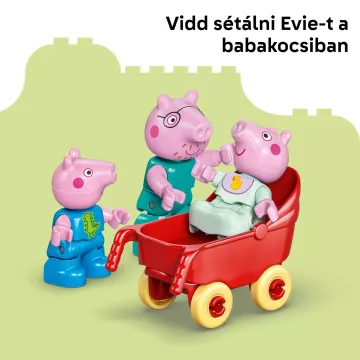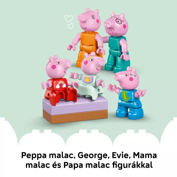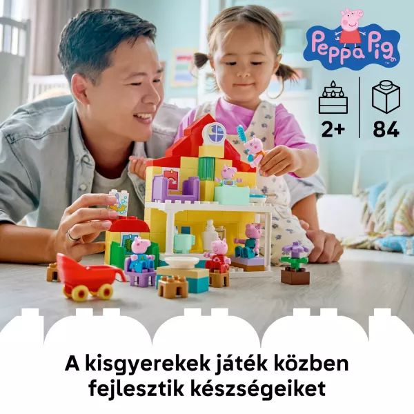 Къщата за игра на Пепа Прасето позволява на малките деца да пресъздават семейни обичаи! Малките деца могат да играят с любимите си телевизионни герои и да пресъздават всекидневни обичаи с комплекта за строителство "Семейната къща на Пепа Прасето" (10467). Този подарък, предназначен за момичета и момчета на възраст 2 години и повече, включва цялото семейство от 5-те героя на Пепа Прасето, включително и ЕвИ прасенцето. Тази двуетажна LEGO® DUPLO® къща за игра разполага с отделни стаи за Джордж и Пепа, както и с кухня, баня и всекидневна. Тази фантастична игра подтиква момичетата и момчетата да пресъздават сцени от сериала и обичайни рутини от своите домове, като подготовката за сън или семейната закуска. Комплектът за строителство с 5 фигурки LEGO DUPLO – мамо, татко, Джордж, ЕвИ и Пепа – помага на децата да развиват емоционалната си интелигентност, като си представят, че имат нов член на семейството. Това е конструктор с аксесоари, необходими за въображаема игра, който позволява на малките строители да си представят как ще се грижат за бебето: как ще го разходят в количка, хранят с биберон или къпят. Комплектът съдържа 84 елемента. • ИГРА ЗА ПЕПА ПРАСЕТО – Малките деца на възраст 2 и повече години могат да откриват новия дом на семейството и да се запознаят с най-новия член – бебето ЕвИ, с конструктора за строителство "Семейната къща на Пепа Прасето" (10467) • ВЪЗПРОИЗВЕДЕТЕ СЕМЕЙНИТЕ ОБИЧАИ – Тази къща за игра подтиква малките деца да играят креативно, когато пресъздават семейния живот с фигурките на мама, татко, Джордж, ЕвИ и Пепа • АВТЕНТИЧНИ ДЕТАЙЛИ – Точно като в сериала, и този LEGO® DUPLO® комплект за игра включва спални за Джордж и Пепа, баня, кухня, всекидневна и множество аксесоари за игра • ОБРАЗОВАТЕЛНА ИГРАЧКА – Този образователен комплект учи децата на вечерни и сутрешни навици и развива емоционалната им интелигентност, докато се грижат за ЕвИ, като я разхождат в количката или я хранят • ПОДАРЪК ЗА МАЛКИ ДЕЦА – Този LEGO® DUPLO® конструктор с функции за разказване на истории е забавен подарък за феновете на Пепа Прасето и за всички деца на възраст 2 години или повече, които обичат да разиграват семейни истории • БЕЗОПАСНИ ИГРАЧКИ ЗА МАЛКИ ДЕЦА – Всички строителни елементи и аксесоари в комплекта за къща напълно отговарят на изискванията за детска безопасност • УЧИ С ПЕПА ПРАСЕТО – Тези образователни игри за малки деца (предлагат се със. частью комплекти) помагат на малките строители да развиват ранните си умения, докато се потапят във въображаема игра • РАЗМЕРИ – Този комплет за детска игра със 84 елемента включва дом на Пепа Прасето, който е 26 см височина, 25 см ширина и 9 см дълбочина